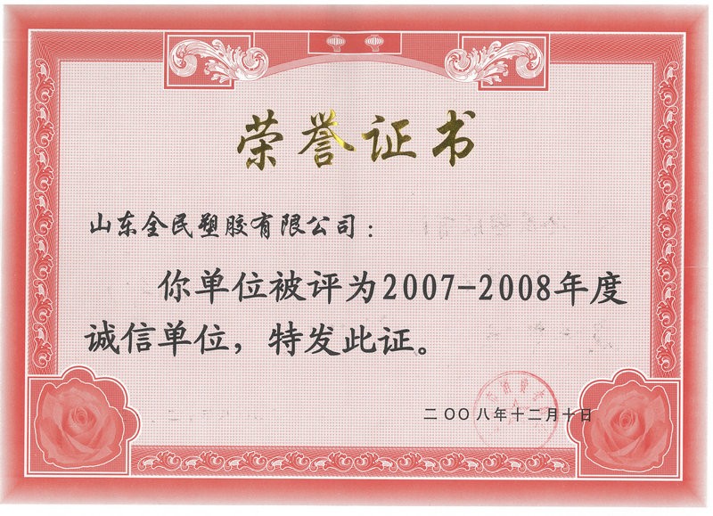 市级诚信企业荣誉市级2008.12